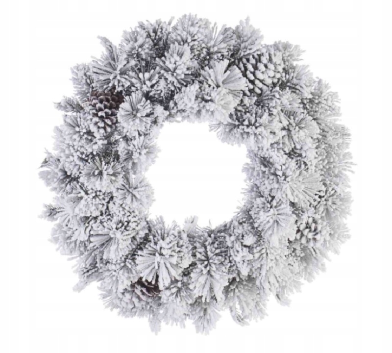 Wprowadź do swojego wnętrza ciepło zimowych dni i naturalny urok lasu dzięki oszronionemu wiankowi świątecznemu z szyszkami sosnowymi marki Bizzotto.