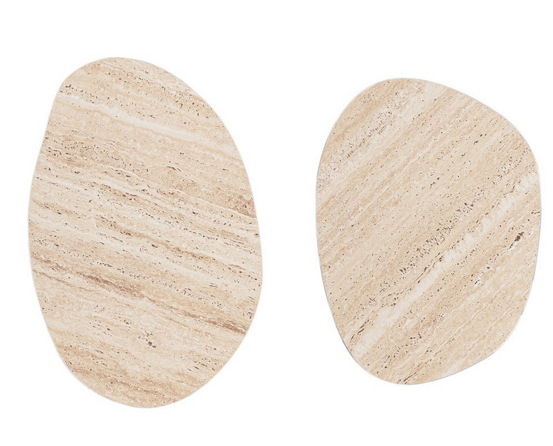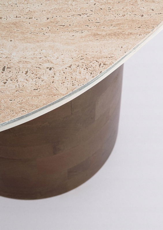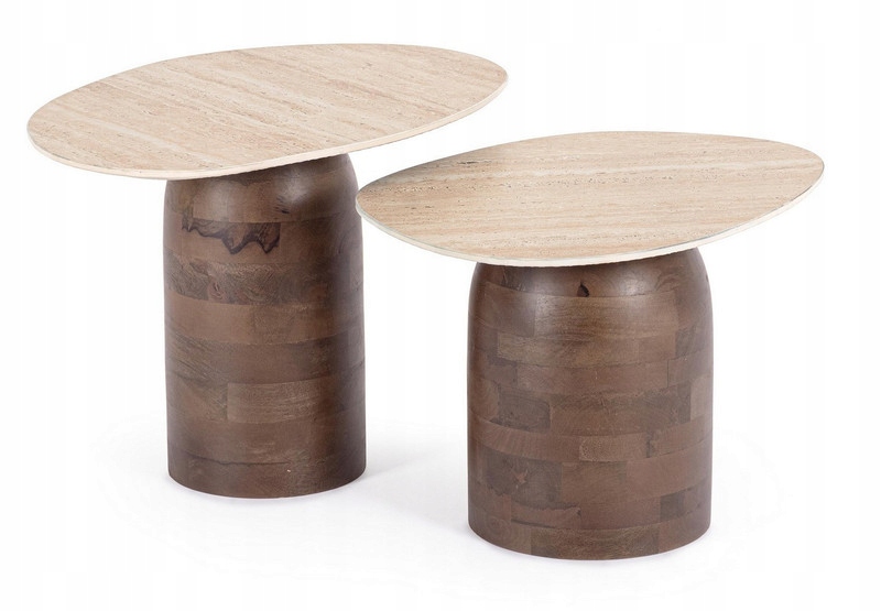 Połączenie ceramicznego blatu z efektem trawertynu i podstawy z drewna mango sprawia, że stoliki są nie tylko funkcjonalne, ale również efektownym akcentem dekoracyjnym w każdym wnętrzu.
