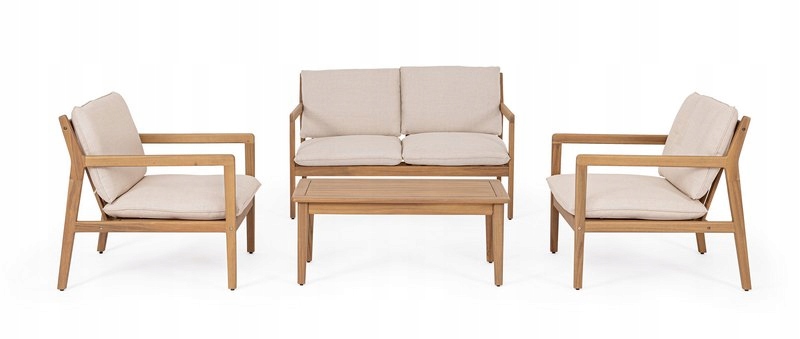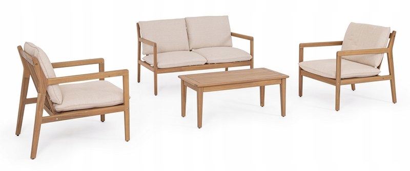 Naturalny zestaw ogrodowy z drewna akacjowego FSC DANUBIO od Bizzotto z wygodnymi poduszkami to elegancki i trwały komplet do wypoczynku w ogrodzie lub na tarasie.