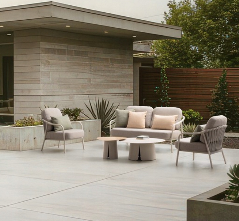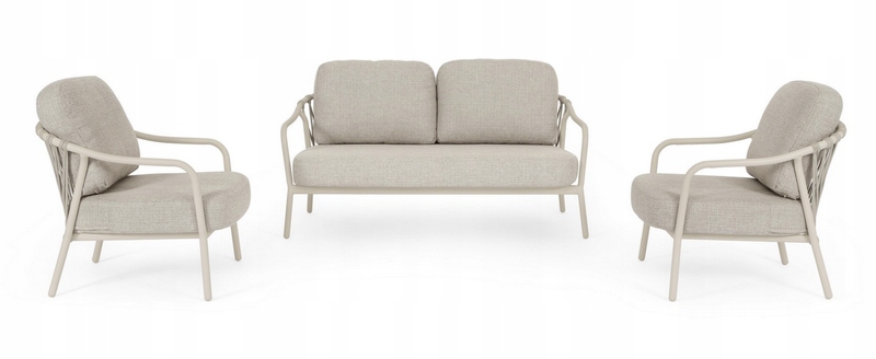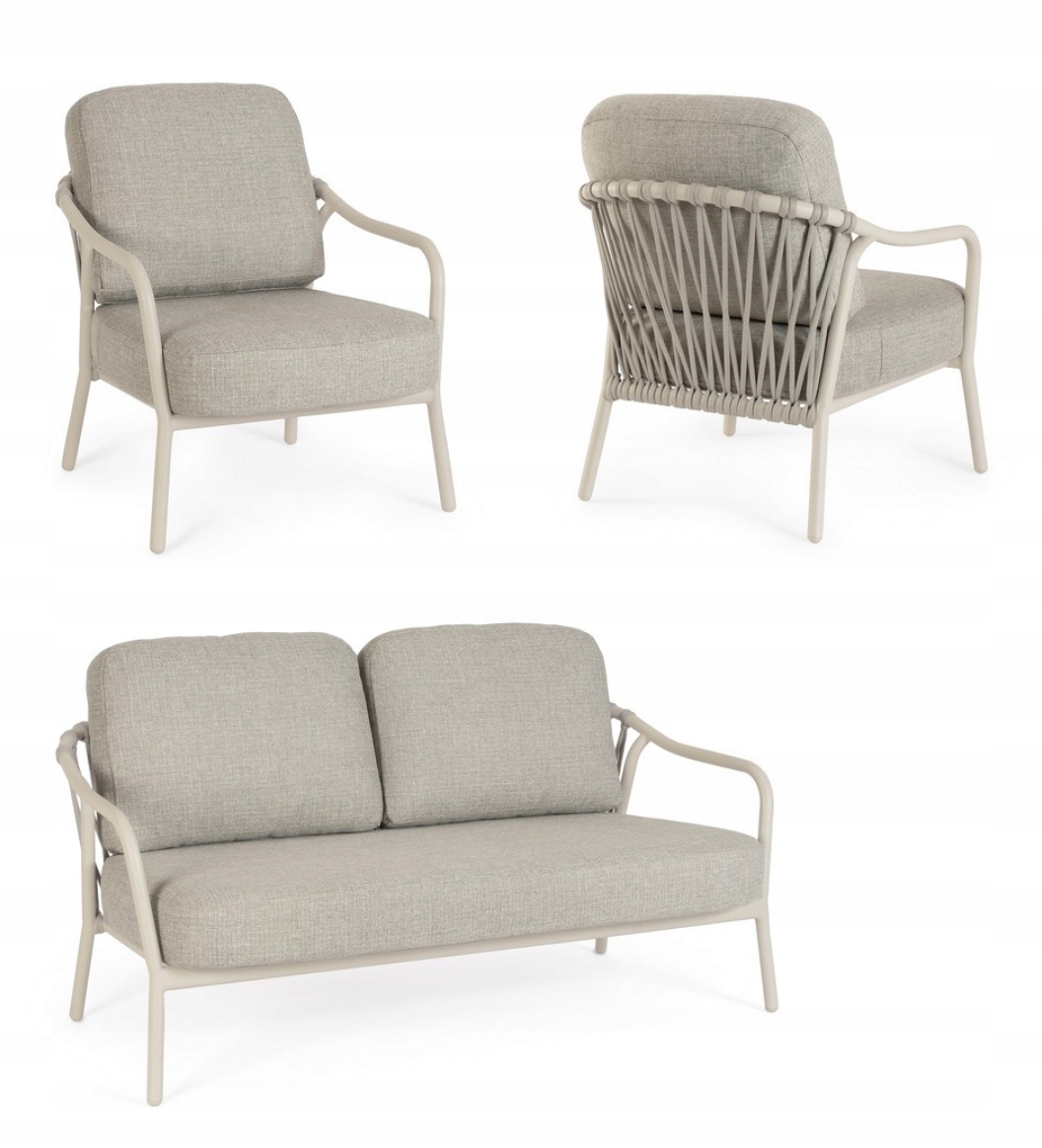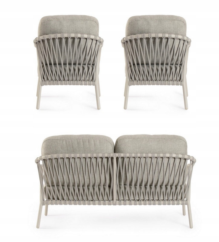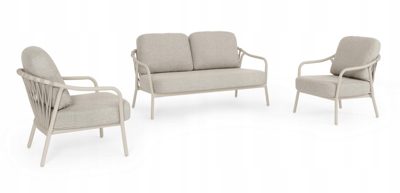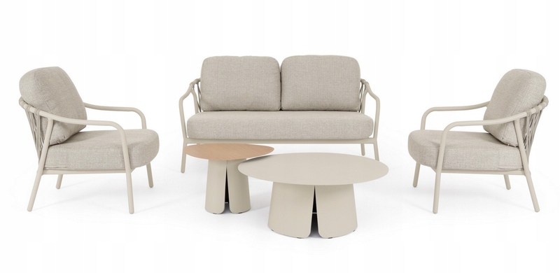 Nowoczesny zestaw ogrodowy EDVIGE z aluminium i wodoodpornymi poduszkami zapewnia komfortowy wypoczynek oraz elegancki wygląd tarasu lub ogrodu.