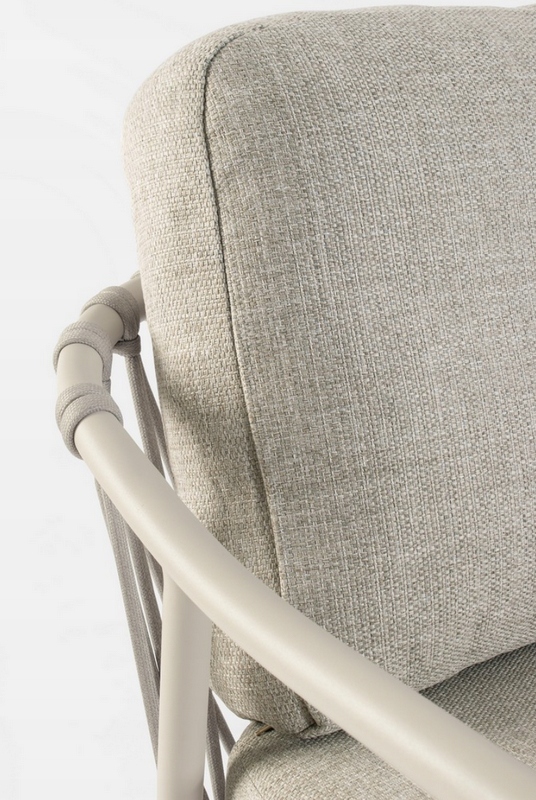 Oparcia wykończone tkaniną olefinową nadają meblom nowoczesny wygląd i zwiększają komfort użytkowania. W zestawie znajdują się również miękkie poduszki ze zdejmowanymi pokrowcami z wodoodpornej tkaniny olefinowej (100% polipropylen), które są odporne na wilgoć i łatwe w utrzymaniu czystości.